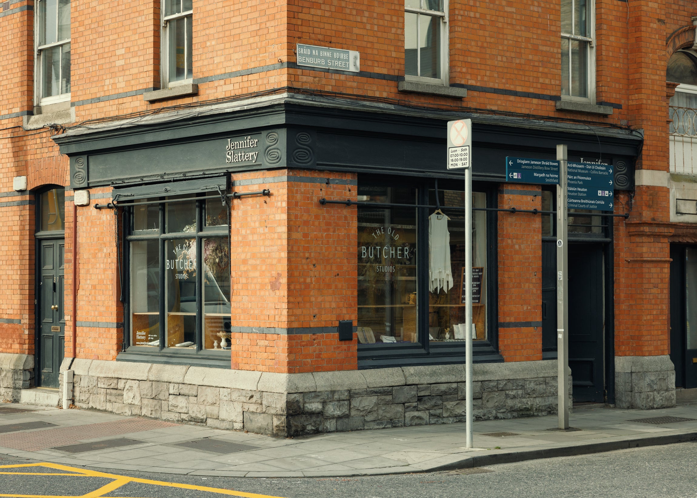 In 2014, we took on the renovation of a redbrick corner of Benburb Street that had been boarded up. Alongside our neighbour and pal, Jamie Lewis of The Wool Felt Shop, we restored the two shops side by side in a complementary approach that respects their Victorian heritage. Both the shutters and the boards that covered the windows were repurposed into display shelving and today, we have Krass Clement and David Jazay photographs on display that chronicle some of the building’s history. We often welcome in visitors who have fond memories of Martin & Joyce butchers who occupied the building for many years and served Jennifer’s own grandmother, who lived locally.