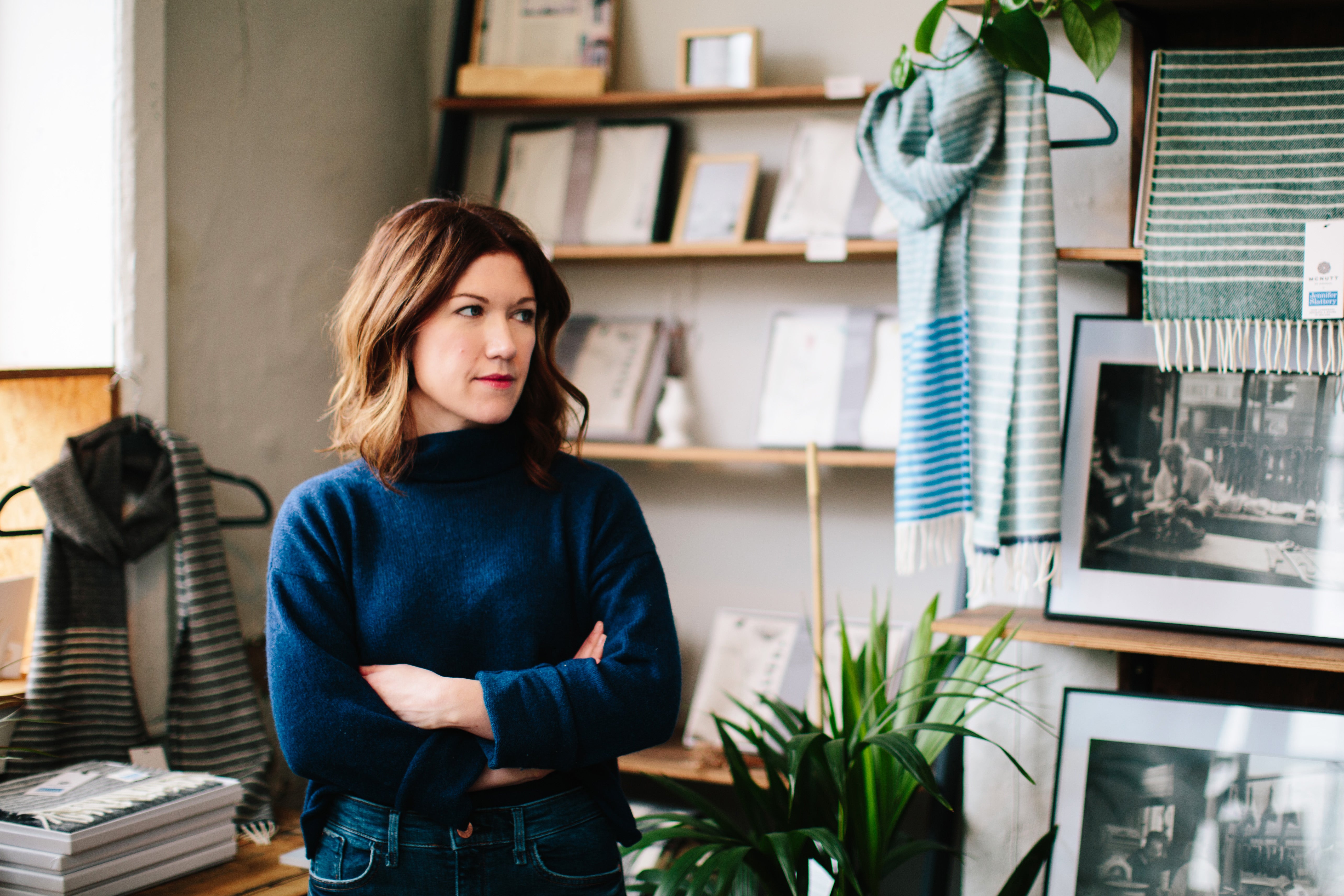 Our name comes from our founder Jennifer, whose pull to knitting and sewing saw her leave her job as a graphic designer in a Dublin design studio in 2007 to study textiles in the National College of Art & Design. Jennifer’s approach to design is rooted in a sense of nostalgia and celebration, which can be seen in motifs of her grandmother’s cutlery, and in the distinctive wildflowers that adorn her work. The company was founded after Jennifer’s grad show pieces sold out in a matter of days in 2011, and today you can find Jennifer Slattery textiles in a host of Irish and international retailers, including our own studio.